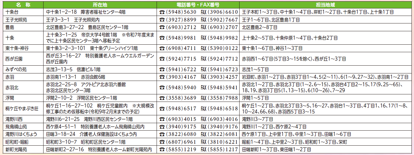 ■東京都北区高齢者あんしんセンター担当地域一覧(令和7年9月1日現在)