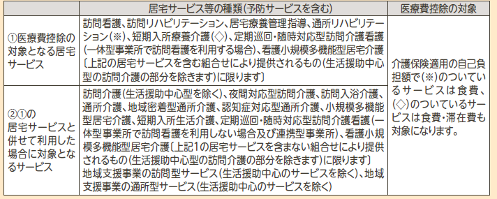 ■医療費控除の対象となる介護保険サービスは下表のとおりです